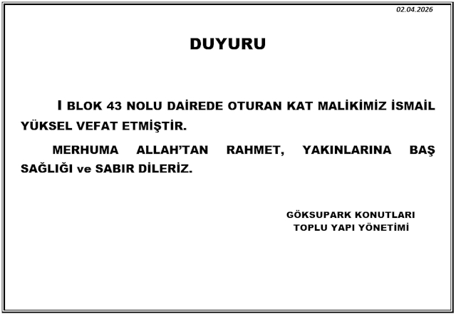 - Bloklarda, Mutfak Balkonu Cephelerinde, Tadilat Yapanlarla İlgili Yasal İşlem Site Yönetimi Tarafından Yürütülmektedir. Ayrıntılar için tıklayınız...