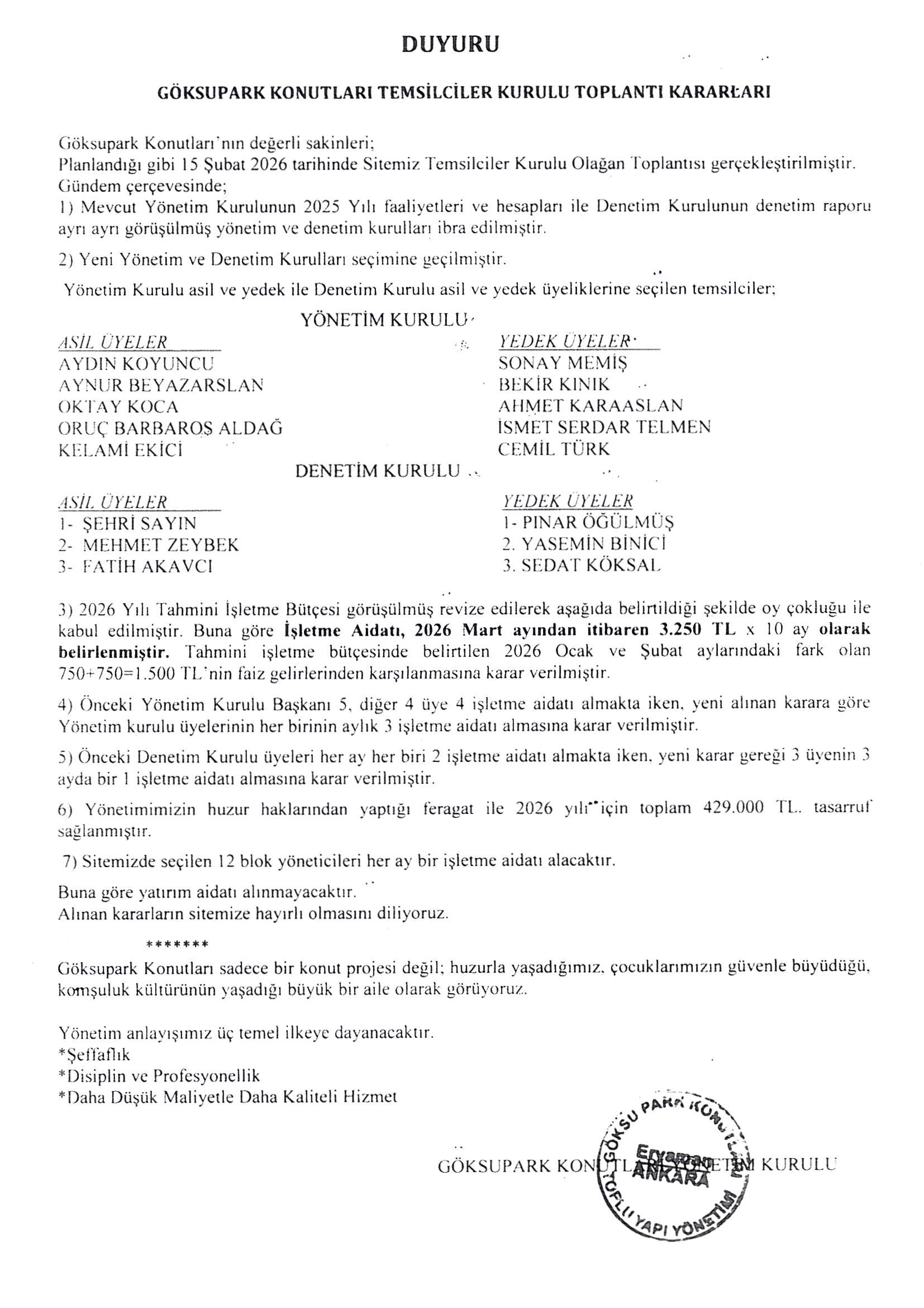 GÖKSUPARK KONUTLARI TOPLU YAPI YÖNETİMİ